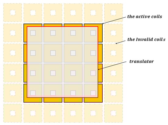 For the MLPM given in Figure 6, parts of the coils under the translator should be actuated to produce the required force and torque. Specifically, the 16 coils located beneath the magnet array contribute the more significant force and torque compared with the coils far away from the magnet array. To validate the decoupling effect of the system, this study chooses to activate only these 16 coils positioned below the translator.