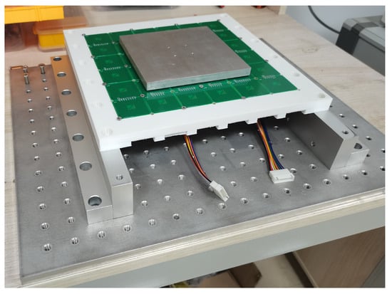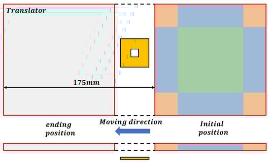 In the implemented prototype, a 2D Halbach array is integrated into an aluminum plate, serving as a translator as illustrated in Figure 9c. The translator has dimensions of 132 mm × 132 mm. During operation, the magnetic field of the system primarily concentrates on the lower surface. To address the end-effects phenomenon commonly observed during translator movement, the structure of the translator is designed to be symmetrical. Several indicator parameters of the prototype are presented in Table 1.