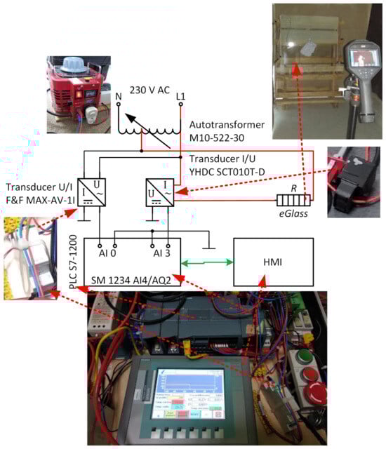 The heating zone electrodes were supplied with AC from an autotransformer, which facilitated changing the power supply parameters (Figure 12).