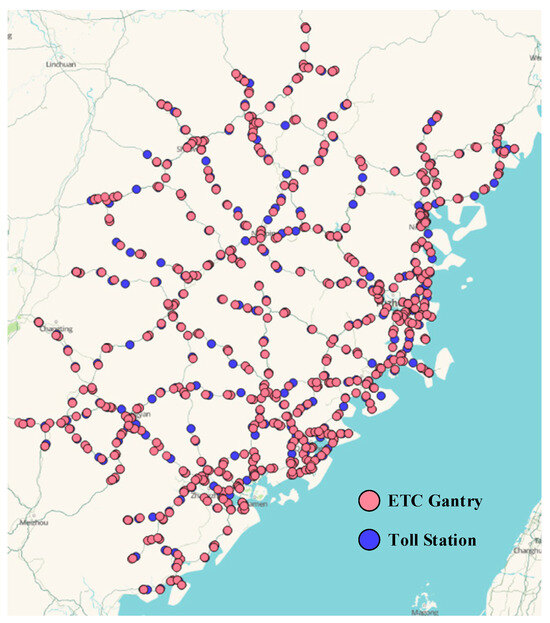 The ETC transaction data utilized in this study were obtained from Fujian Expressway Information Technology Co., Ltd. (Fuzhou, China). Restrictions apply to the availability of these data, which were used under license for this study and are not publicly available. Data are available from the authors with the permission of Fujian Expressway Information Technology Co., Ltd. All data processing and analyses were conducted in compliance with relevant data protection and privacy laws. No individual or personal data were used in this study.