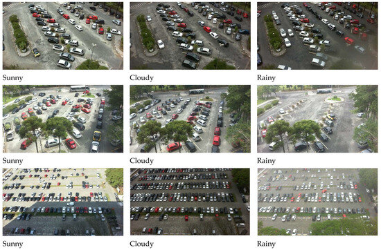 There are 12,417 labeled images in the PKLot [26] parking dataset. The images in the dataset cover different kinds of climate conditions, such as rainy, sunny, and overcast preprocessing, in terms of the initial set, noise reduction, and elimination of other impurities to make a refined dataset for tagging and solution development periods (Figure 3). These images present distinct features because the dataset has different parking lots.