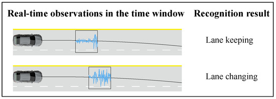 The criteria for determining whether a test sequence is recognized correctly are illustrated in Figure 7. For a test sequence with marked driving behavior, it is first divided into several subsequences based on the time window . Next, TSWHMM determines the driving intention for each subsequence. If all the recognition results match the label, the test sequence is deemed correctly recognized. Otherwise, it is considered incorrect.