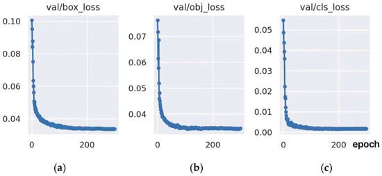 Curve of the loss function: (a) bounding box loss; (b) objectness loss; (c) confidence score loss.