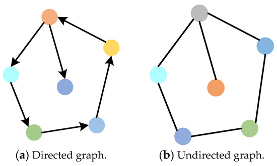 The adjacency matrix represents the adjacency relationship between the vertices in the graph, and it is two-dimensional, where is a non-negative real number that represents the weight of the edge between node and node For the directed graph, if an edge exists between node and node , is recorded as 1; otherwise, it is 0. Moreover, for the undirected graph, it satisfies . Therefore, the expression of is as follows: