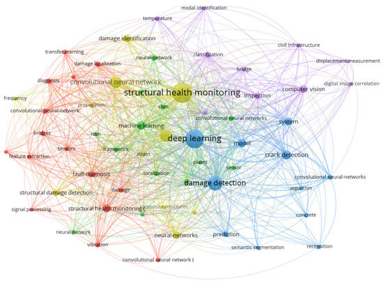 - Keywords setting: Considering that CNN is the most commonly applied algorithm in DL, CNN was also selected as a keyword in addition to “SHM” and “DL.” The selected keywords and their parallel relationships were: ((((“health monitoring” OR “health surveillance”) AND (“structure” OR “structural”)) OR “SHM”) AND (“deep learning” OR “deep-learning” OR CNN OR “convolutional neural network”)).