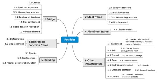 - At the application level, we summarized the popular application objects and application functions of DL for SHM on different facilities and facility components.