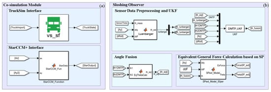 - Xu, X.; Zhu, C.; Cai, H. Study on the driving stability of lane change for semi-trailer liquid tanker based on simulation platform. Exp. Technol. Manag. 2022, 39, 96–100. [Google Scholar]