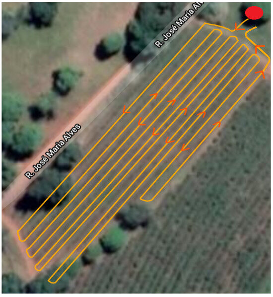 Planned and executed path for data acquisition at coffee plantation located at Federal University of Lavras.