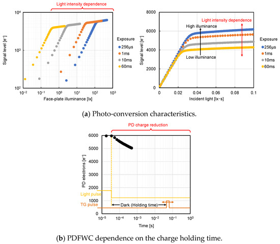 The remainder of this paper is organized as follows: The light intensity and charge holding time dependence phenomena of PDFWC were introduced in Section 1. In Section 2, our analytical model and formulization of these phenomena are described. Comparison results of these analytical models, TCAD simulation, and measurement are shown in Section 3, and conclusions are provided in Section 4.
