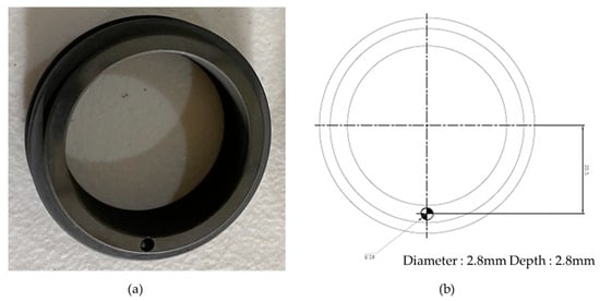 A mechanical seal comprises two constituent parts: a stationary seal and a rotating seal. This study utilizes a pair of seals, both possessing a diameter of 38 mm. The observation in Figure 9 indicates that the rotating component of the two seals exhibited a perforation, while the stationary part of the seals remained free from any imperfections. The aperture exhibited a diameter of 2.8 mm and a depth of 2.8 mm. The aforementioned item was employed as an imperfect barrier to examine a seal’s inherent deficiency linked with an MSH fault.