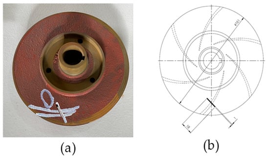 (a) Impeller fault. (b) Schematic diagram of the impeller fault.