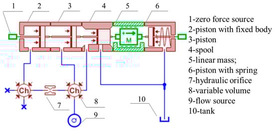 where is the inflow rate to the system, is the system’s leakage coefficient, is the fluid capacity of the hydraulic pipeline and valve chamber, is the valve core’s pressure-bearing surface area, and is the valve core displacement.