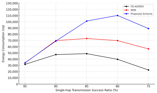 Figure 8. Energy Consumption by Single-hop Transmission Success Ratio.