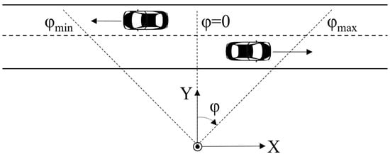 In practical situations, if the sensor is positioned so that the zero azimuth corresponds to the axis perpendicular to the road (Figure 2), sounds originating from the vehicle moving on the road will be limited to a specific azimuth range, for example, −20° to 20°. By limiting the sound intensity analysis to components originating from directions within the range of interest, it is possible to reduce the level of the unwanted sounds from the environment, thus increasing the signal-to-noise ratio for the sound intensity analysis.