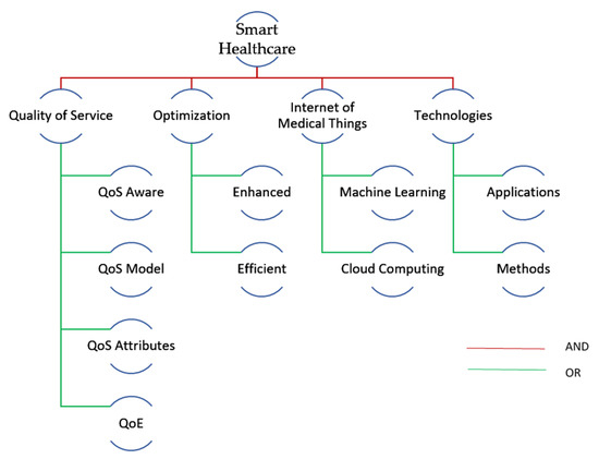 Raising the proper questions makes review studies valuable and significant to the research community since they influence the entire SLR process. Review questions explain any changes or evolution in the SLR topic’s status and suggest if these changes should be accepted as part of the body of knowledge [10]. Questions were organized in a hierarchy of fundamental inquiries to ongoing research difficulties to provide readers a thorough understanding of the subject. Additionally, RQs were in line with the research objectives and the most up-to-date procedures and techniques being used in SHAs. The research topics that follow are intended to reveal the state of the art in QoS optimization for healthcare applications. The following research questions are answered in this review: