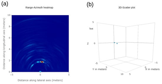(a) Range–azimuth heatmap and (b) 3D scatter plot.