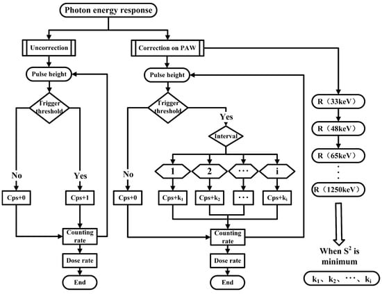 The real-time correction of the energy response based on PAW is mainly required for the convergence of the detector response values at different energies. Under this constraint, the minimum value of the variance of in Equation (2) represents the stability of the detector response.