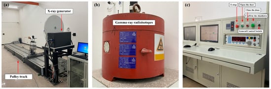 (a) Standard radiation field X-ray reference standard radiation device. (b) γ radiation source device. (c) Console.