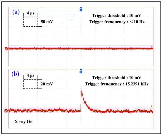 (a) Baseline. (b) Pulsed signal under photon energy radiation of 33 keV.