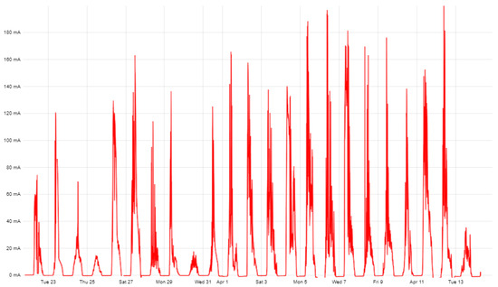 Charging current schedule from 22 March–13 April 2021. The average current generated during the entire period was Iv = 16.8 mA.