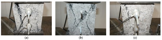 Failure modes of anchoring–grouting system with different water–cement ratios. (a) Water–cement ratio: 0.4. (b) Water–cement ratio: 0.5. (c) Water–cement ratio: 0.8.
