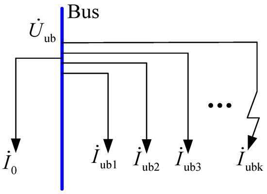 Figure 1 shows an equivalent operational circuit based on ZSV, where , , and are the potentials of a three-phase power supply, is the neutral grounding admittance, is the ZSC flowing through the neutral branch, and and are the phase A to ground capacitance and conductivity of the feeder lk.