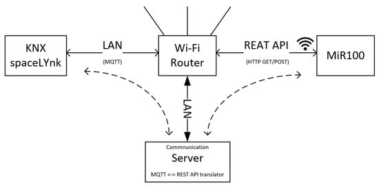 - MIR100 REST API. 2022. Available online: https://www.jugard-kuenstner.de/fileadmin/daten/Downloads/Intralogistik/MiR_Transportsystem/MiR100_MiR200/MiR_Rest-API.pdf (accessed on 21 January 2023).