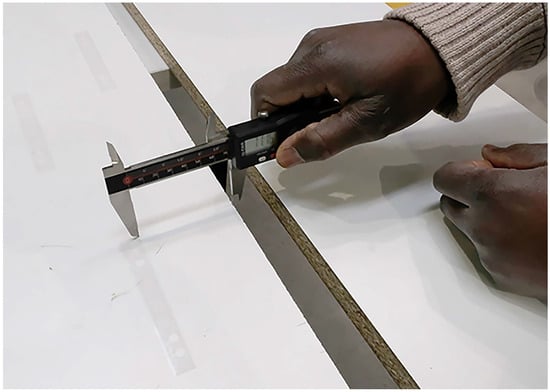 In order to estimate the expected inaccuracies from a possible misalignment, an experimental study was conducted. For the evaluations, a number of dummies of strain gages were used that were applied to boards that resemble the form boards used when the experimental bridge was built. Form boards are wooden boards used as a form to pour the concrete in. They lie close to each other and follow the direction of the structure. Thus, they give a similarly helpful aid for orientation compared with the imprints of the form board that could be found on-site. The gages were installed by an engineer with a certain experience in the mounting of electric strain gages in industrial applications. Thus, his work reflects the accuracy that can be expected for this use case. For the determination of the angle of misalignment, a precise sliding caliber was used. An impression of the procedure of evaluating the angle of misalignment is given in Figure 8. Figure 9a shows a histogram of the angles of misalignment computed from the results and a normal fit to the results, while Figure 9b visualizes the similarity to the Gaussian distribution in a normal probability plot. The empirical distribution function can be characterized by its expected value of compared with the axis and standard deviation . The 95% confidence intervals for the two estimators can be given by [] for and [] for and were evaluated using the bootstrap methodology.