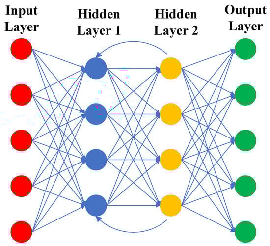 Recurrent neural network (RNN) [23,24,25], as one of the branches of deep learning networks, usually refers to temporal recurrent neural networks, which are mainly used to process sequential data, with the aim of associating the current output of a sequence with the previous information to form a recurrent connection. The most important feature of RNN is the hidden state throughout the input and output of the network. It is used as an input to the RNN along with the input vectors, which are updated and then used as an output to the RNN along with the output vectors [26,27]. At this point, the updated hidden state that is output will be used as part of the next input, thus preserving the previous information. Remote sensing images usually contain both temporal and spatial information, and RNNs are often applied to LULC classification due to their powerful temporal processing capabilities. Figure 3 shows the graphical depiction of RNN.