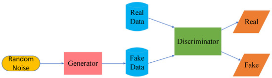 Generative adversarial network (GAN) is one of the most promising unsupervised learnings in recent years. It contains two kinds of neural networks, generator network and discriminator network, and the two neural networks learn against each other. During the training process, the generator constantly adjusts its parameters to allow the generated samples to fool the discriminator [28]. The discriminator, to more accurately determine whether the samples are real samples or generator samples, also constantly adjusts the parameters. In this way, in iterative optimization, the final generator-generated samples are realistic enough so the discriminator cannot accurately distinguish. GAN, due to its unique adversarial learning mechanism, can solve the problems caused by category imbalance, cross-region adaptive learning, and data augmentation, thus improving the accuracy and robustness of the network. Figure 4 shows the graphical representation of GAN [29].