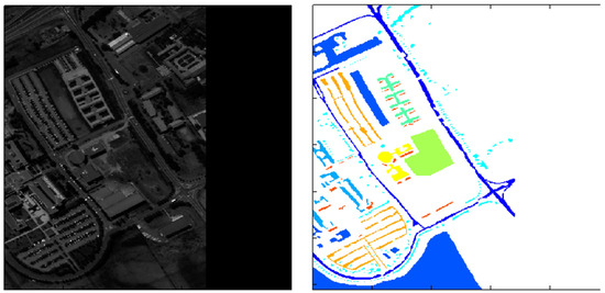 Figure 8. Schematic diagram of Pavia University. - LoveDA [35] is an adaptive ground cover dataset created by the RSIDEA team at Wuhan University in 2021 for land cover mapping. The 5987 images of this dataset are taken from the data collected by GoogleEarth in three areas, Wuhan, Nanjing, and Changzhou, and each image is 1024 × 1024 pixels in size with a spatial resolution of 0.3 m after correction processing. Due to the late publication of the LoveDA dataset, it has had less impact compared to some of the classic semantic segmentation datasets, such as Indian Pines and Pavia University (Figure 9).