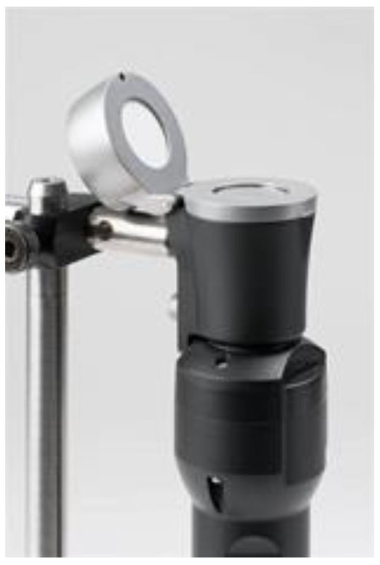 The NIR spectra of the unadulterated commercial whisky samples and adulterated mixtures were randomly collected using a portable NIR instrument (Micro-NIR Onsite, Viavi, Milpitas, CA, USA) operating in the wavelength range between 900 and 1600 nm (10 nm wavelength resolution). The sample presentation method used was the droplet collar accessory shown in Figure 1, provided by the instrument manufacturer. In this sample accessory, 50 µL of the sample (unadulterated and adulterated samples) was pipetted onto the sample window and scanned in triplicate to evaluate the repeatability of the NIR scans. After spectra collection, the MicroNIR droplet collar was cleaned with ethanol then with MilliQ water and dried with a Kimtech® wipes between samples. The spectra collection and instrument setup were controlled using the proprietary software provided by the instrument manufacturer (MicroNIR Prov 3.1, Viavi, Milpitas, CA, USA). The spectral data acquisition parameters were set at 50 ms integration time and averaging 50 scans (MicroNIR Prov 3.1, Viavi, Milpitas, CA, USA) as recommended by the instrument manufacturer. Every 10 samples, a reference spectrum was collected using the Spectralon® tile supplied by the instrument manufacturer. In total, 216 samples were collected (12 commercial labels × 3 replicates × 6 adulteration levels).