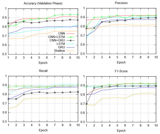 Gated recurrent unit (GRU) is also a type of RNN comprising of an update and reset gate, trained to select, and retain information that needs to be fed to the output. The update gate allows the determination of past information to be sent to future states fully or partially and significantly reduces the vanishing gradient problem. The reset gate determines the scope of forgetting past information. While the applicability of CNN and RNN structures is widespread in image processing and handwriting recognition, their applicability in anomaly detection systems is relatively nascent [,]. To the best of our knowledge, the present work is the first to consider deep learning structures for the security of IoBNT devices and interfaces.