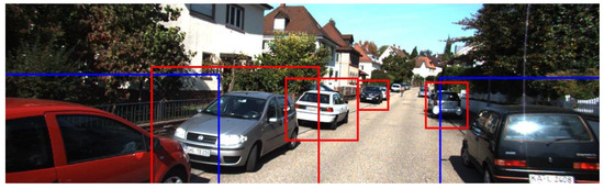 The 3D coordinates (x, y, z) are converted to 2D coordinates (u, v) via projection vectors based on the camera and LiDAR sensor information in the dataset (3). The converted 2D object regions are overlaid with the image regions from the camera collected simultaneously with the LiDAR sensor to indicate where the 2D object detection algorithm should perform (Figure 11).