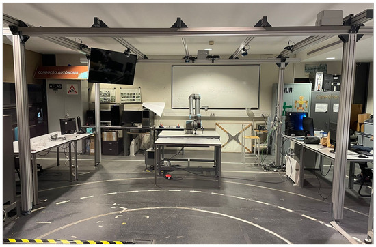 The work described in this paper is part of the AUGMANITY project (https://www.augmanity.pt, accessed on 31 October 2023) that aims to develop technologies to support people operating in industrial environments. The experimental setup comprises the integration of both hardware and software components in a prototype collaborative cell (LARCC), as illustrated in Figure 1. The LARCC is equipped with a UR10e collaborative robot and multimodal sensor devices, including three LiDAR Velodyne sensors and four Orbbec 3D cameras distributed throughout the work volume. The software architecture is built upon the Robot Operating System (ROS) middleware [51], providing a robust framework for communication and coordination among the various components. In this context, this section provides a description of the materials used during this study and the methodological approaches followed to face the key challenges.