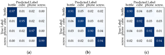 Figure 8. “Full User Dataset” confusion matrices (CNN model): (a) User1, (b) User2 and (c) User3.