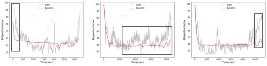 Visualization of the results of the baseline method [12]. The baseline method performs poorly during the induction and recovery periods. In addition, the baseline model predicts that the patient’s BIS is approximately 40 during the maintenance period. However, some patients have BIS values of approximately 50 or 30 during the maintenance period.