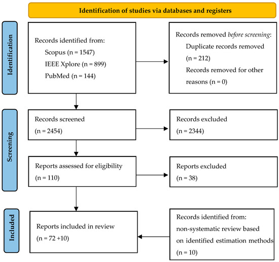 This systematic review follows the criteria of the “Preferred Reporting Items for Systematic Reviews and Meta-Analyses (PRISMA 2020)” statement [30,31]. The steps of the review process according to PRISMA 2020 are illustrated in Figure 3.