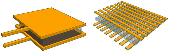 Sandwich structures of film pressure sensors consisting of a top and bottom copper layer connected by a piezoresistive ink: (left side) single-point sensor and (right side) sensor matrix [33] (Reprinted with permission from [33], 2023 Springer Nature).
