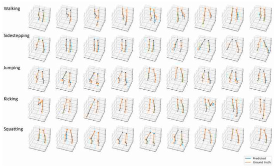 The findings and results from the reviewed papers can be categorized into several areas, including the design and integration of sensor hardware into products for specific applications, testing the performance of new ML algorithms for posture estimation and comparing them, applying and testing validated ML algorithms for new applications and input data and improving existing DHMs for human posture estimation. Figure 8 shows the result of lower-body posture estimation nearly fitting perfectly to the ground truth data.