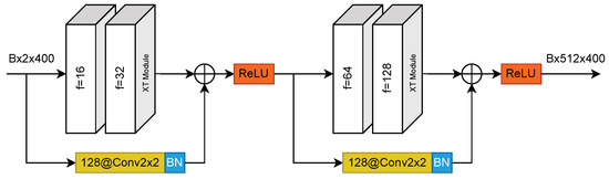 XceptionTime (XT) block architecture. Abbreviation: B = batch size; BN = batch normalization; f = .