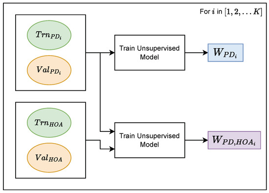 The combination of training and validation sets used to train unsupervised learning models and generate pre-trained weights. Abbreviations: HOA = healthy older adult; PD = Parkinson’s disease; W = weights.