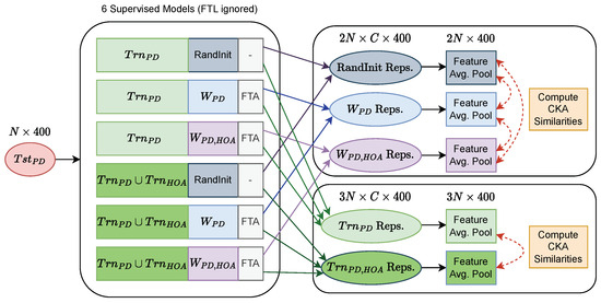 - Kornblith, S.; Norouzi, M.; Lee, H.; Hinton, G.E. Similarity of Neural Network Representations Revisited. arXiv 2019, arXiv:1905.00414. [Google Scholar]