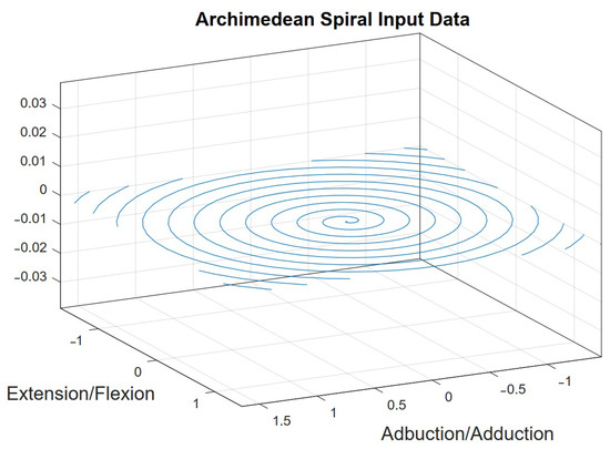 Known as the Archimedean spiral, the input represented in Figure 8 was used as the basis for the study of the workspace and applied in performing spherical movements, considering that the tremor movements in the wrist only involve spherical and rotational motions.
