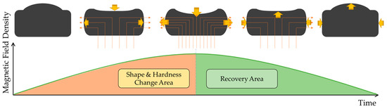 In this study, the inherent characteristics of the main materials used to construct the structure for implementing motions of contraction and expansion, including magnetorheological fluid (MRF) and magnetorheological elastomer (MRE), are briefly described. These materials, which respond to magnetic fields, exhibit diverse properties and can be implemented according to the designer’s intentions, making them versatile for various fields of application.
