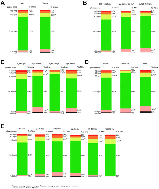 3.2. Effects of Exercise and Individual Characteristics on CGM Data Distribution