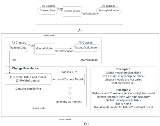 Schematic of (a) the global model and (b) hybrid (global integrated with dispute) model technique.