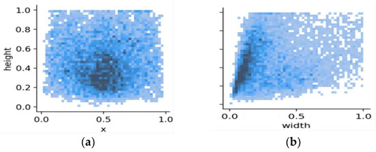 Image division: Where (a) is the target center-of-mass location distribution, and (b) is the image size distribution.