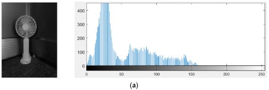 To intuitively display the imaging effect of the high DR pixel proposed in this paper, MATLAB is used to simulate the output image and photon-counting histogram (PCH) of the high DR image sensor, as shown in Figure 1. Figure 1a shows the original image and its PCH. Figure 1b shows the image and its PCH after being captured by this high DR image sensor. It can be seen that the image quality is obviously improved, and the DR is extended under both high-light and low-light conditions.