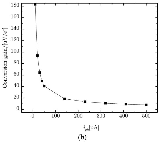 Figure 6b also illustrates this problem. Although the CG in a photo-current of 10–50 pA has a high rate of change, the change is linear. The change rate of CG in 50–500 pA photo-current is low, but there is an inflection point at 140 pA, making the change in the CG nonlinear and affecting the image sensor’s linearity. This linearity problem is consistent with the traditional pixel structure and is widespread. Due to limited space, the paper focuses on solving the high dynamic problem. In the literature [25], the non-linearity problem has been analyzed and a solution has been proposed to eliminate it.